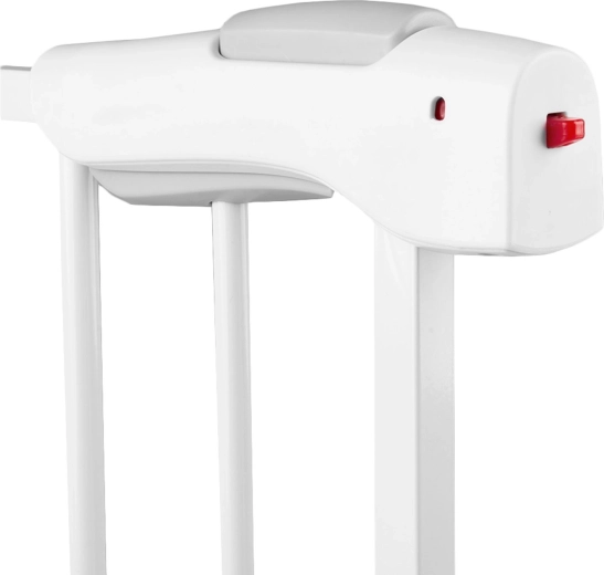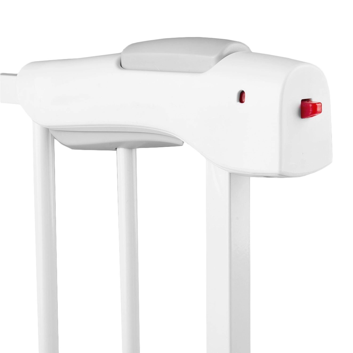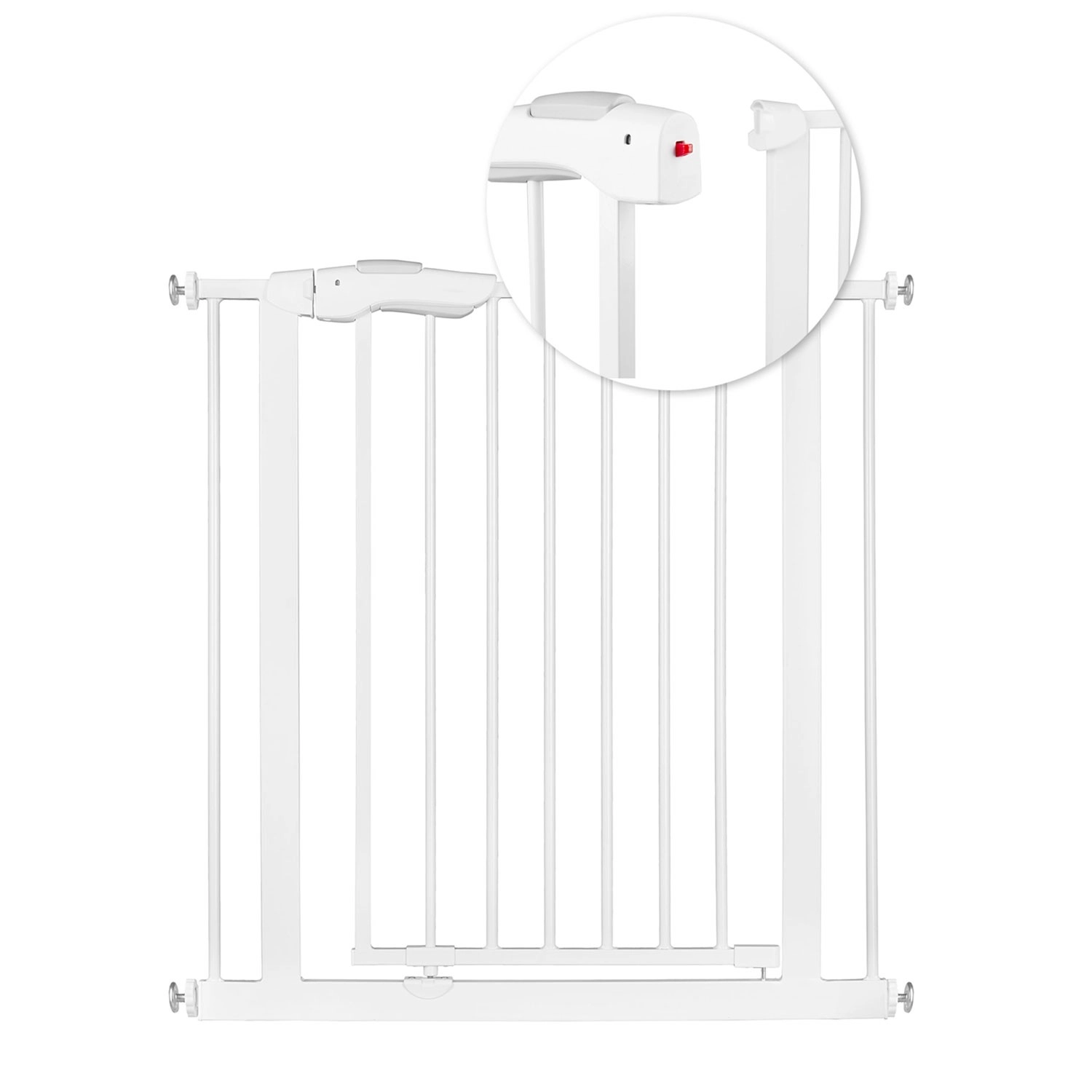 Mantieni bambini e animali domestici al sicuro grazie alla barriera universale bianca NUKIDO con fissaggio a pressione senza forature. Offre larghezza regolabile 75–85 cm, apertura con una sola mano, passaggio bidirezionale e doppia sicurezza. La solida struttura in metallo e la certificazione EN 1930:2011 garantiscono una protezione affidabile su scale e passaggi.