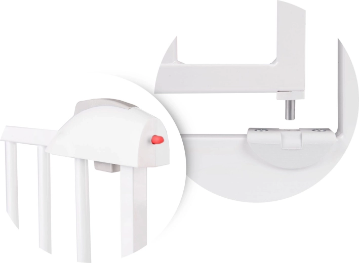 Il cancelletto di sicurezza NUKIDO protegge i bambini dall’accesso alle scale e ad aree pericolose senza installazioni complicate. Grazie al fissaggio a pressione (a espansione) senza forature non danneggia pareti né stipiti e può essere rimosso in qualsiasi momento. La struttura in metallo di colore bianco si integra perfettamente in ogni interno.