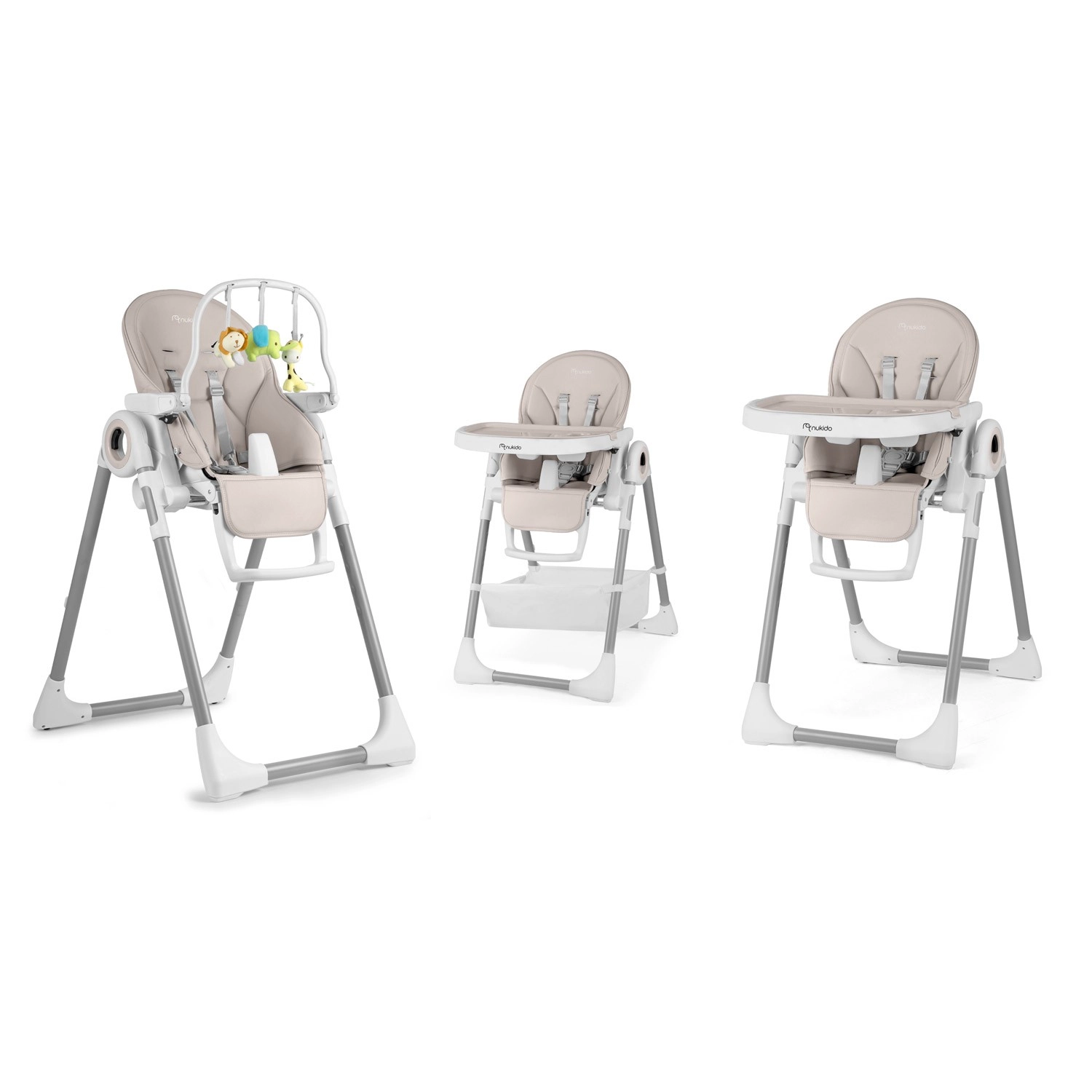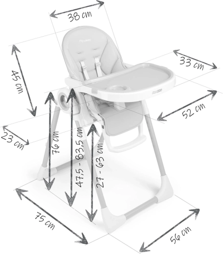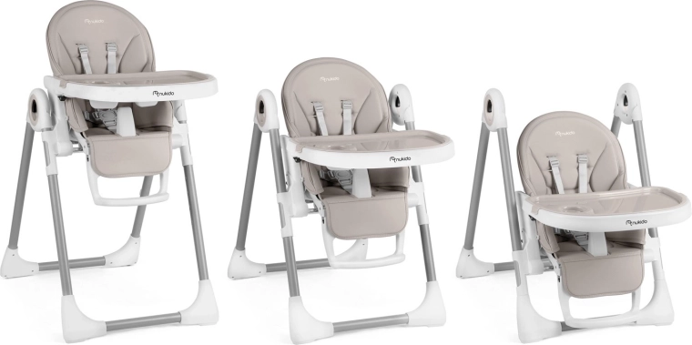 Nukido Belo offre comfort e sicurezza durante i pasti quotidiani e il gioco. Grazie agli 8 livelli di regolazione in altezza, il seggiolone si adatta facilmente al tavolo da pranzo o al divano. Le 5 posizioni dello schienale e il poggiapiedi regolabile consentono di trasformare il seggiolone in una comoda sdraietta per i più piccoli e in una seduta confortevole per i bimbi più grandi.