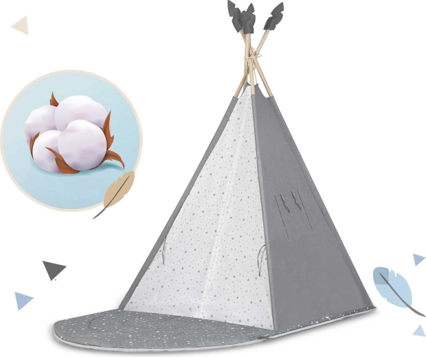 Il tipi NUKIDO è progettato pensando alle esigenze dei bambini – in una morbida e resistente miscela con cotone premium per un’ottima traspirabilità e comfort. L’elevata grammatura del tessuto 175 g/m² garantisce morbidezza e durata, così la tenda affronta senza problemi le avventure quotidiane. Le armoniose tonalità di grigio con motivo a stelle si integrano perfettamente negli interni e favoriscono lo sviluppo sensoriale del bambino.