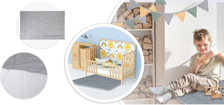 Il mix di cotone premium con grammatura 175 g/m2 è piacevole al tatto, garantisce un’ottima ventilazione e resiste al gioco quotidiano. Ideale per una lettura confortevole e per i sonnellini pomeridiani.