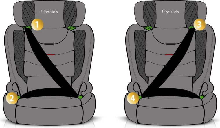 - ISOFIX + guida cintura – fissaggio stabile e instradamento intuitivo della cintura di sicurezza.