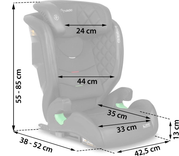 Nukido Louis è un seggiolino auto sicuro ed elegante con morbide impunture per i viaggi quotidiani. Grazie al sistema ISOFIX l’installazione è rapida e sempre corretta, mentre la SIP (Side Impact Protection) aumenta la protezione di testa, collo e colonna in caso di urto laterale. Il seggiolino cresce con il tuo bambino grazie al poggiatesta a 12 posizioni e a 2 livelli di inclinazione per una postura comoda a ogni età.
