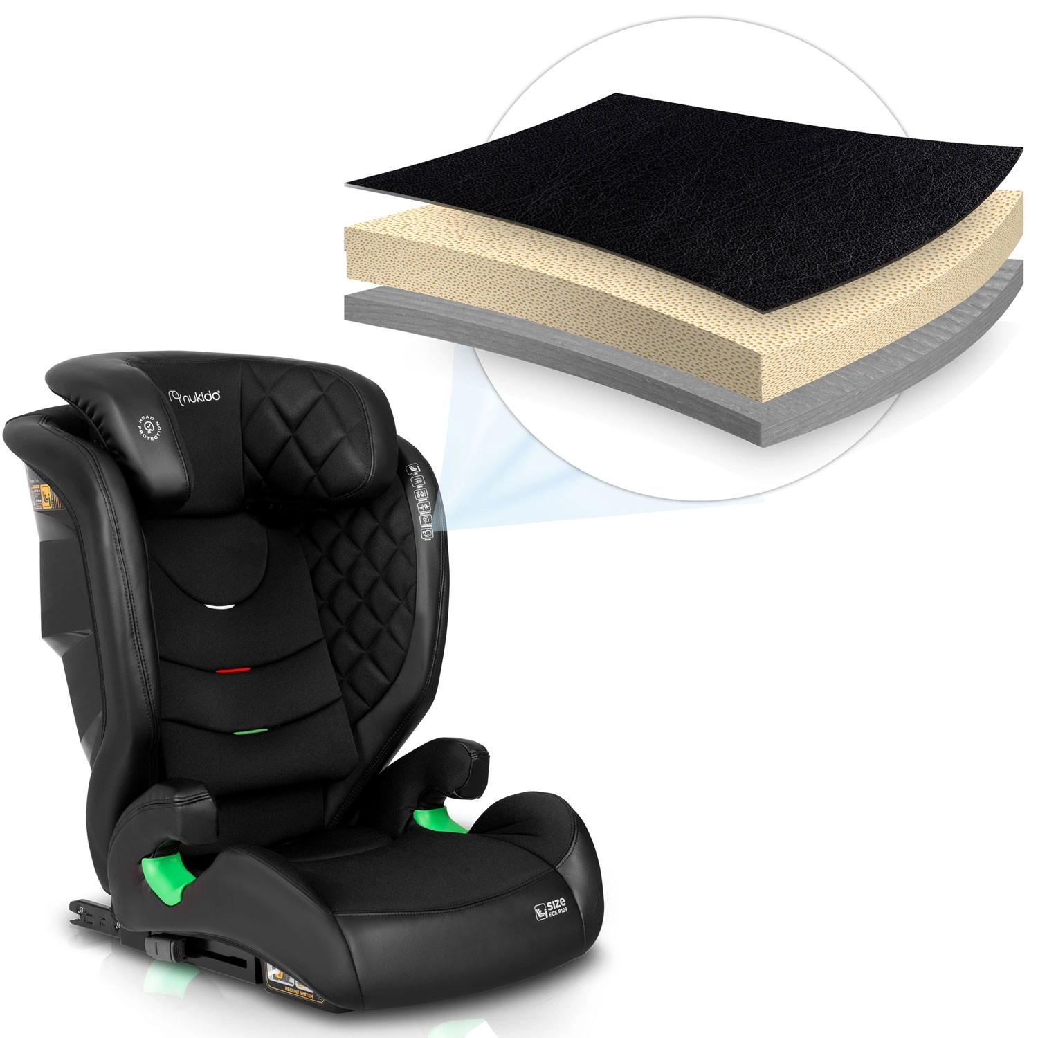 Il seggiolino auto Nukido Louis combina sicurezza premium, comfort e installazione ISOFIX semplice per bambini con altezza 100–150 cm (ca. 4–12 anni). Dispone di protezione laterale SIP, 12 livelli di regolazione del poggiatesta, 2 posizioni di inclinazione e rivestimento facilmente removibile lavabile. Soddisfa il rigoroso standard ECE R129 / i-Size e può essere utilizzato anche come rialzo per bambini più grandi.