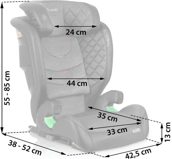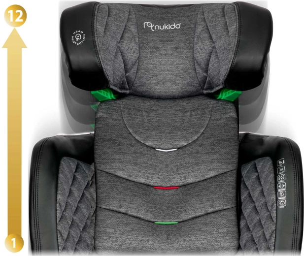 Il seggiolino auto Nukido Louis è progettato per bambini da circa 4 a 12 anni (100–150 cm) e combina elevata sicurezza, comfort e praticità. L’installazione stabile tramite ISOFIX mantiene il seggiolino fermo, mentre il sistema SIP – Side Impact Protection potenzia la protezione di testa, collo e colonna in caso di urto laterale. Il rivestimento premium con morbide impunture e le 2 posizioni di inclinazione rendono piacevoli anche i viaggi più lunghi.