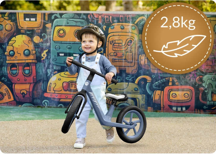 Il peso di soli 2,8 kg facilita la partenza, il controllo e il trasporto. Il bambino impara più velocemente a bilanciare e sterzare senza sforzi inutili.