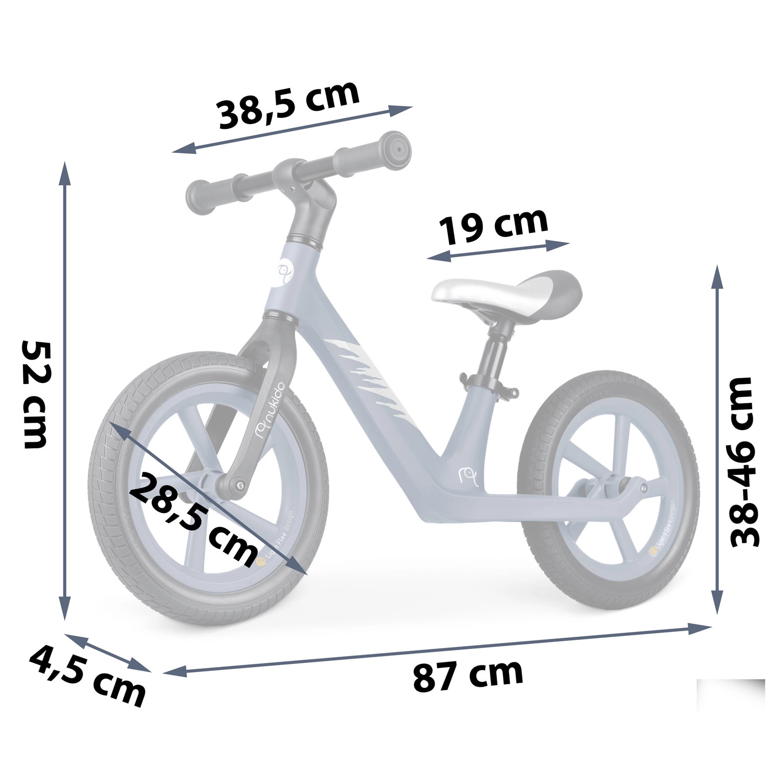 La leggerissima bici senza pedali NUKIDO Light Flee aiuta i bambini a sviluppare equilibrio e coordinazione ancor prima della prima bici con pedali. Dispone di telaio in nylon resistente, altezza sella regolabile con escursione di 8 cm, sella morbida ed ergonomica e ruote da 12" in EVA antiforatura per una guida fluida e sicura. Grazie alle manopole antiscivolo con terminali la presa è salda e la bici è super leggera – solo 2,8 kg, quindi facile da manovrare e trasportare.