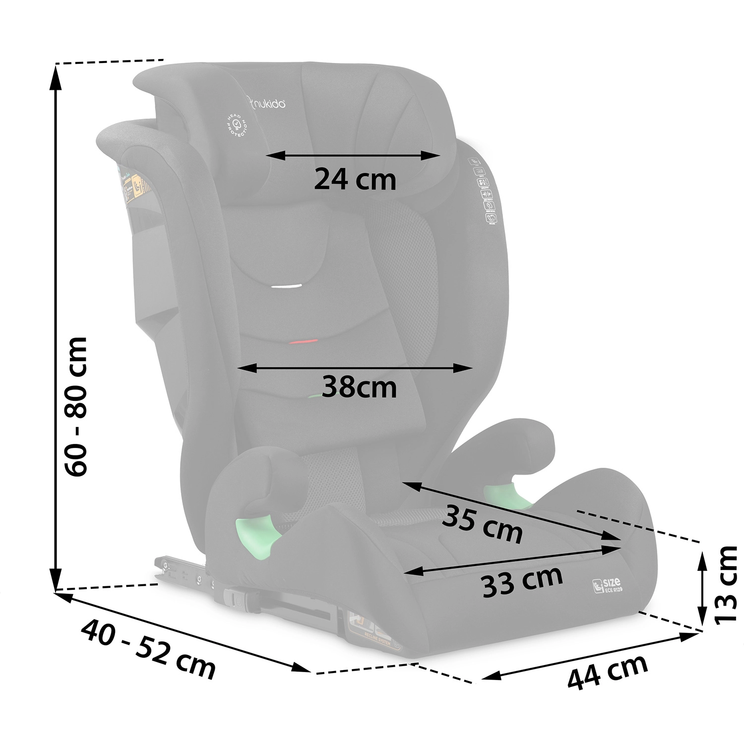 Il seggiolino auto NUKIDO Louis Soft cresce con il tuo bambino indicativamente dai 4 ai 12 anni. Grazie all’intervallo di altezza 100–150 cm (i-Size) e ai 12 livelli di regolazione del poggiatesta, garantisce sempre il corretto posizionamento della cintura e un comodo supporto per la testa. Il sistema ISOFIX offre un collegamento solido con la struttura del veicolo, mentre l’avanzata SIP – Side Impact Protection potenzia la protezione in caso di impatto laterale.