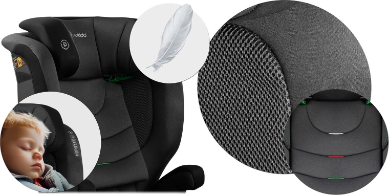 Il modello Nukido Louis Soft combina massima sicurezza e comfort duraturo per i viaggi quotidiani. La struttura robusta con sistema ISOFIX assicura un ancoraggio stabile, mentre lo standard i-Size (ECE R129) conferma il rispetto delle normative europee più rigorose. Grazie al poggiatesta a 12 posizioni e alla regolazione dell’inclinazione a 2 livelli, il seggiolino si adatta facilmente alle esigenze e all’altezza del bambino.