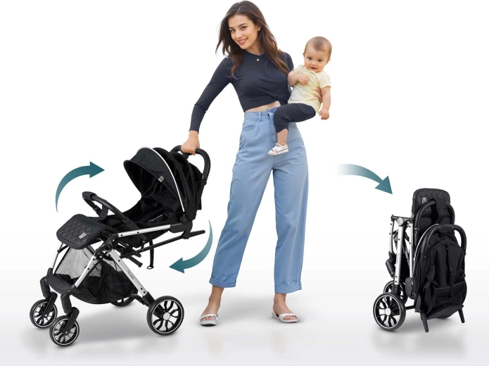 - Chiusura rapida: pulsante intuitivo per chiudere in 2 secondi – anche con il bambino in braccio.