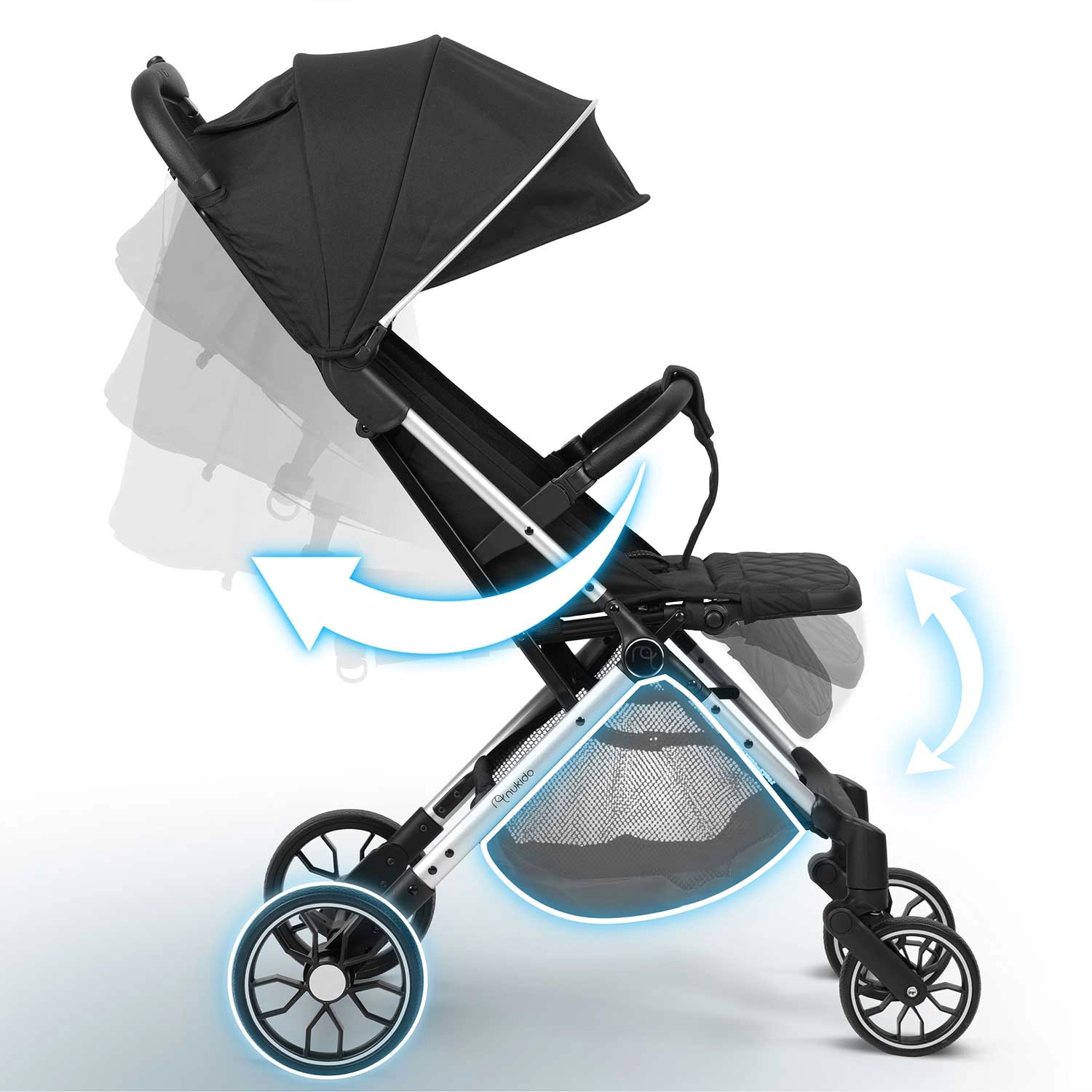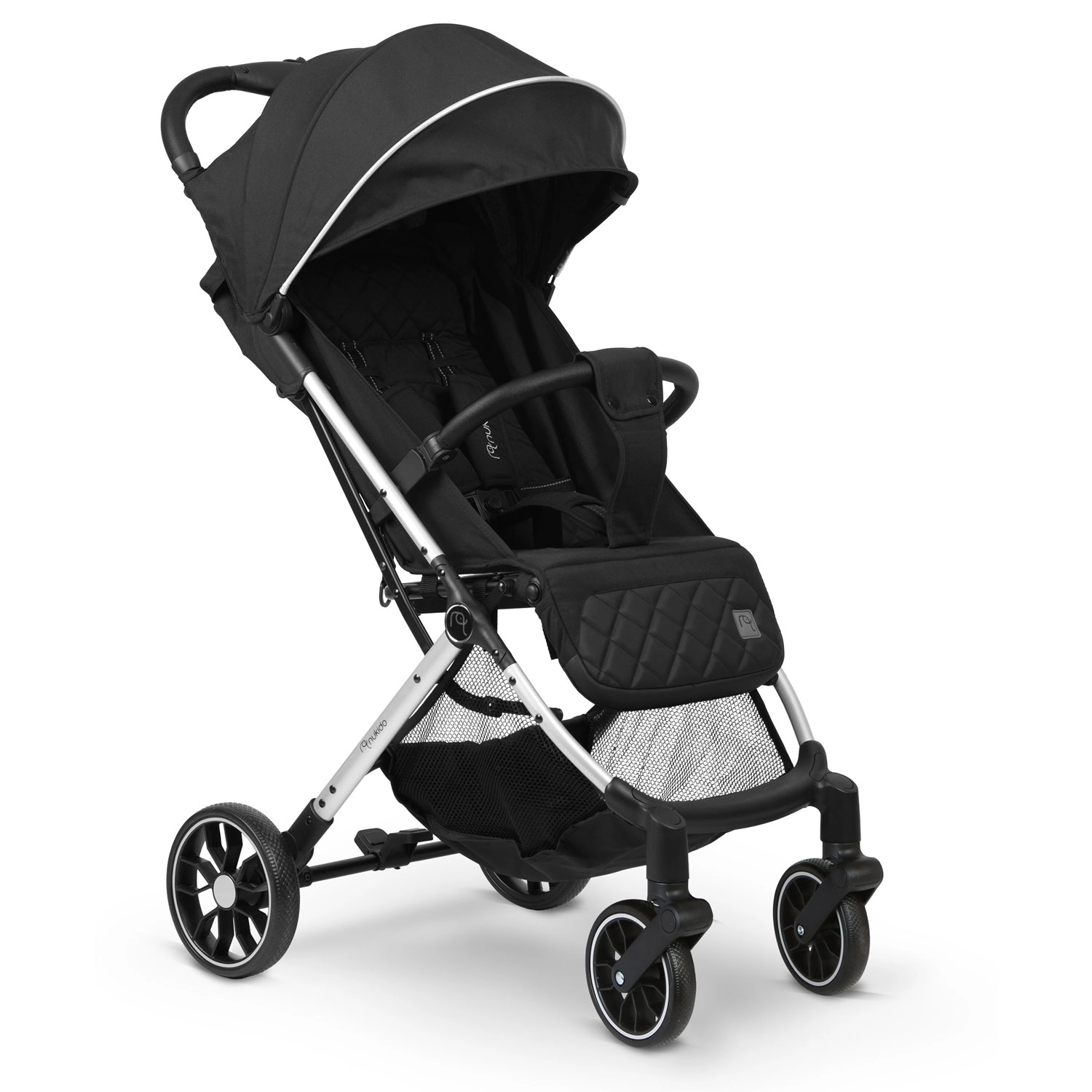 Il passeggino sportivo Nukido Paseo, leggero e compatto, è il compagno ideale per l’uso quotidiano e i viaggi. Offre chiusura rapida con una mano in 2 secondi, ruote anteriori girevoli a 360° con sospensioni, grandi ruote posteriori per terreni irregolari e cintura di sicurezza a cinque punti. Grazie allo schienale reclinabile fino alla posizione nanna, al poggiapiedi regolabile e al tettuccio impermeabile regolabile ed estensibile, il bambino è comodo con ogni condizione meteo. Inclusi parapioggia e coprigambe.