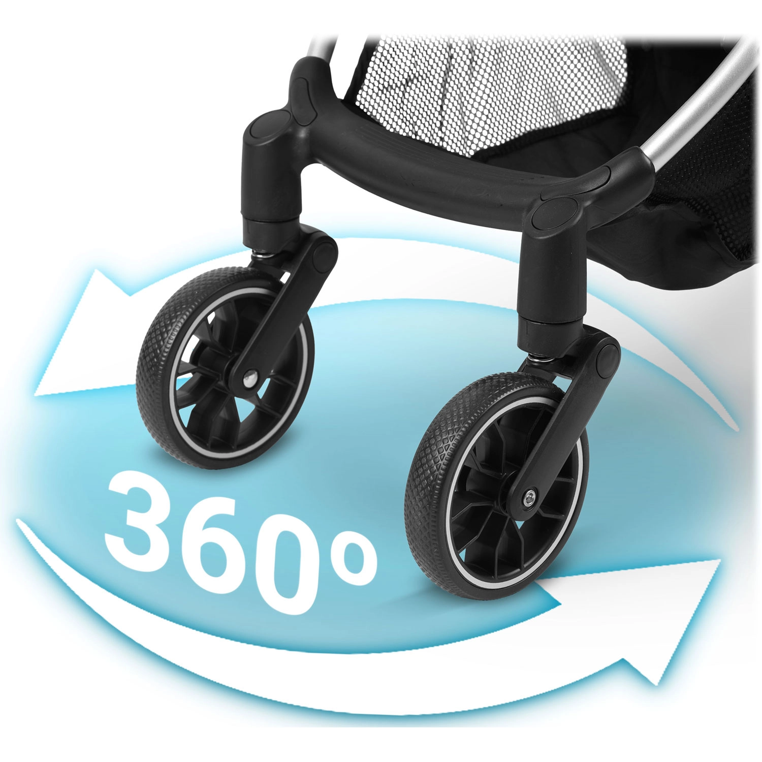- Guida senza sobbalzi: ruote anteriori a 360° con sospensioni e grandi ruote posteriori per la stabilità.