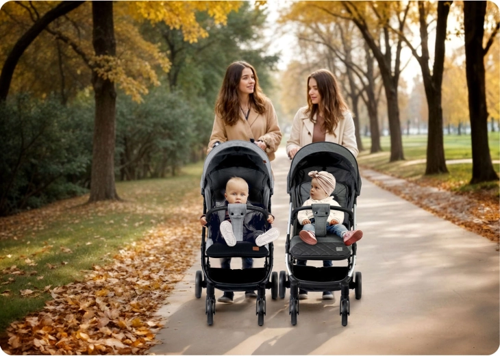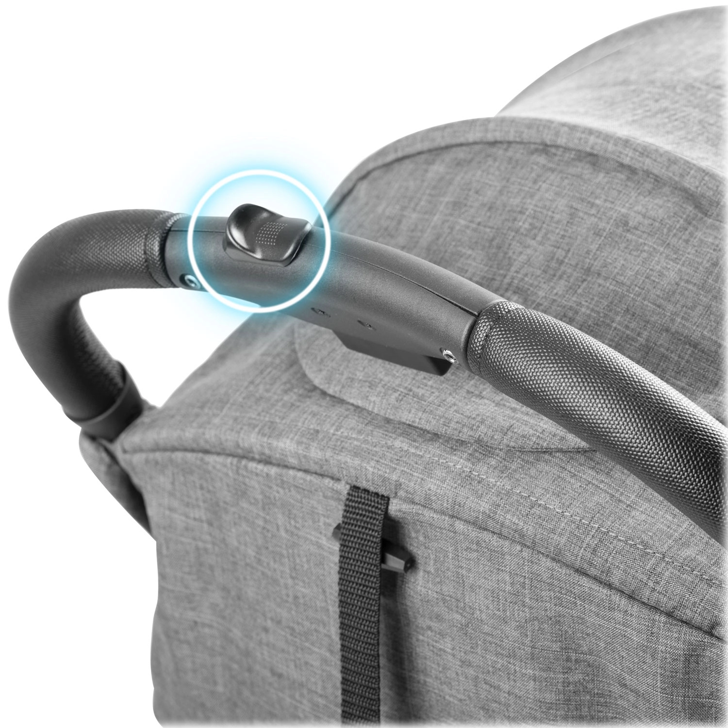 La capottina multi-posizione protegge dal sole e dal vento; il tessuto idrorepellente resiste alla pioggerella. Aprila quanto serve quando il bambino dorme o sollevala per una migliore visuale.