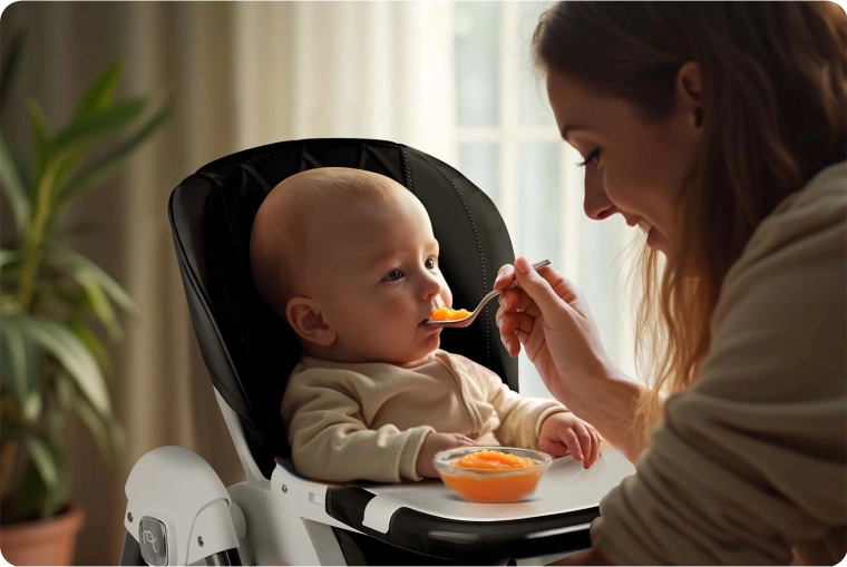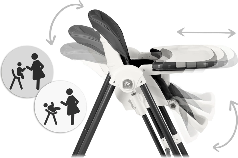 Un solo aiuto per ogni giorno: pappa comoda, riposo tranquillo e un dolce dondolio. L’inclinazione fluida dello schienale fino alla posizione distesa assicura comfort fin dalla nascita.