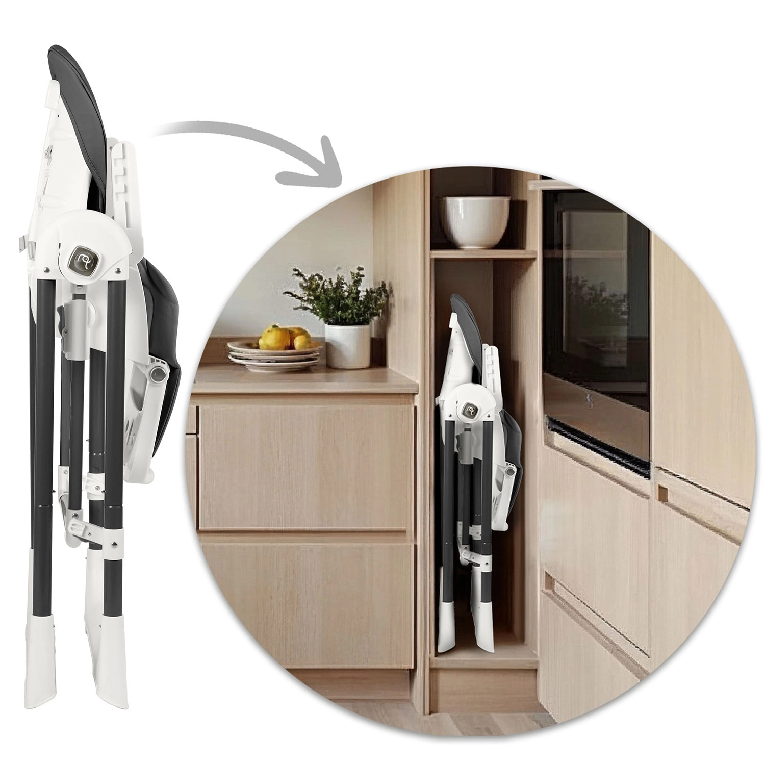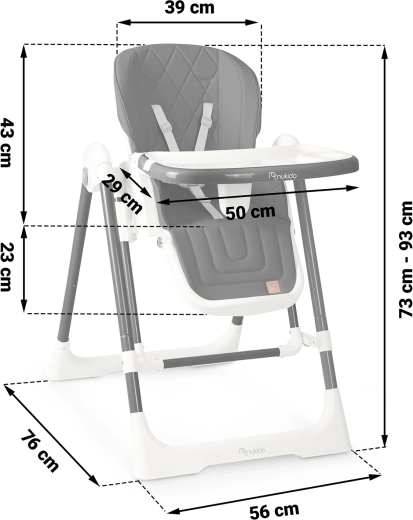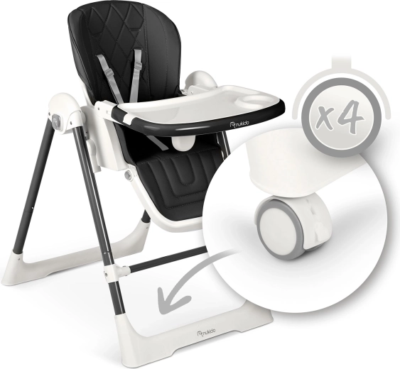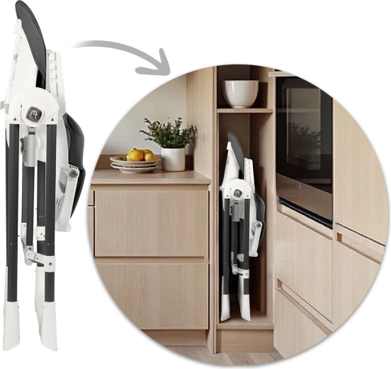 Il pratico vassoio removibile con inserto superiore si stacca e si risciacqua rapidamente, il rivestimento in materiale morbido si pulisce con facilità. Le cinture a 5 punti tengono il bambino al sicuro, le gambe larghe con terminali antiscivolo garantiscono stabilità. Dopo la pappa, il seggiolone si chiude facilmente in dimensioni salvaspazio e grazie alle ruote lo sposti senza sforzo dove serve.