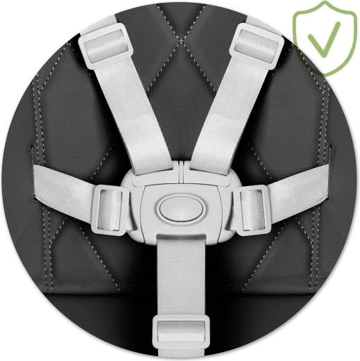 Cinture a 5 punti robuste e regolabili in lunghezza con fibbia resistente mantengono il bambino nella posizione corretta e impediscono che scivoli autonomamente dal sedile.