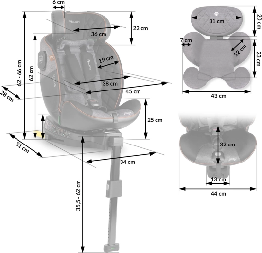 Il poggiatesta regolabile in 12 step e l’inclinazione a 5 livelli garantiscono ergonomia dal neonato all’età scolare. L’imbottitura morbida e l’inserto per neonato aumentano il comfort.