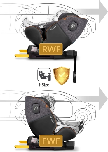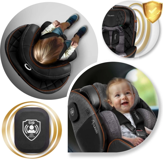 Le sponde rinforzate con sistema SIP assorbono l’energia d’urto in caso di collisione laterale. L’ancoraggio ISOFIX con gamba di supporto aumenta la stabilità e riduce il rischio di installazione errata.