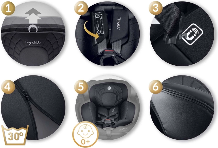 NUKIDO Aero Line è un seggiolino auto premium che combina i più elevati standard di sicurezza i-Size con un comfort duraturo dalla nascita fino a circa 12 anni. Grazie al sistema girevole a 360° allacci facilmente il bambino di lato e scegli l’orientamento di marcia RWF/FWF in base all’età e all’altezza. Il morbido rivestimento trapuntato, l’ergonomia studiata e l’inserto per neonato garantiscono comfort anche nei viaggi lunghi.