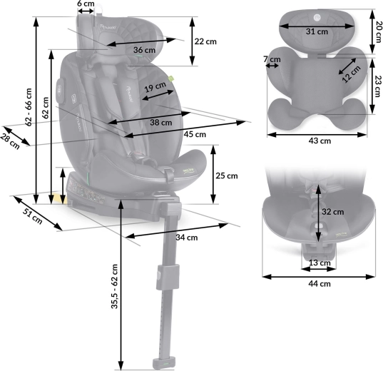L’avanzata SIP – Side Impact Protection con assorbitori laterali di energia, il piede di supporto e i robusti ancoraggi ISOFIX offrono stabilità e protezione in caso di impatto. Il poggiatesta a 12 posizioni cresce con il bambino, le 5 posizioni di inclinazione aumentano il comfort del sonno e le cinture a cinque punti con copricinghie antiscivolo restano salde in posizione. Il rivestimento sfoderabile è lavabile per una manutenzione facile.