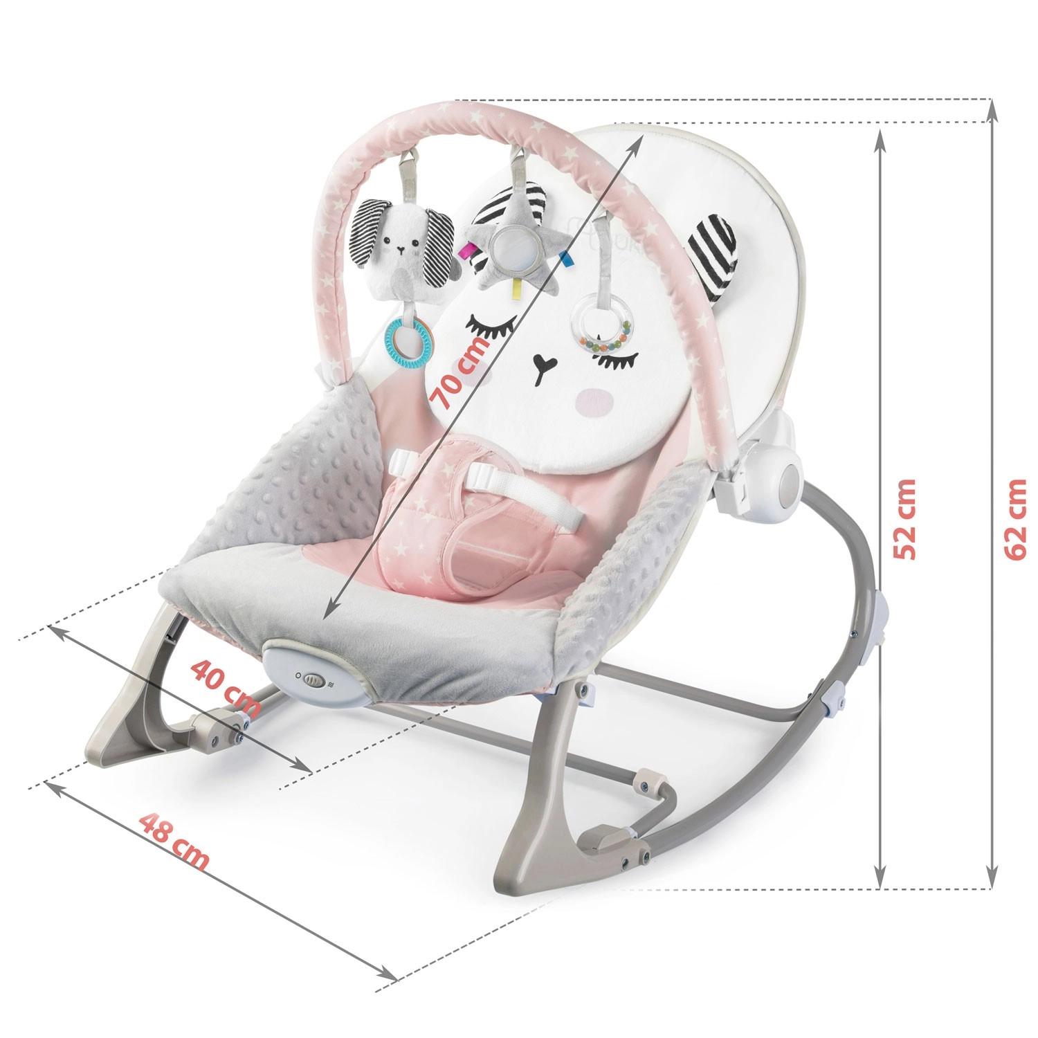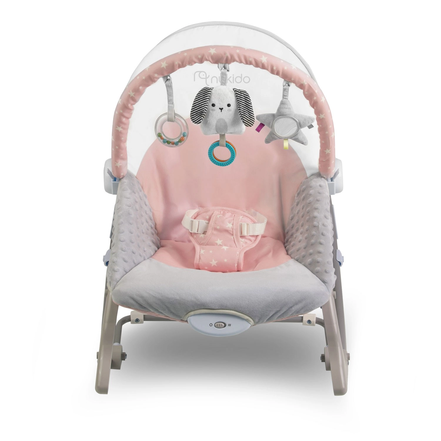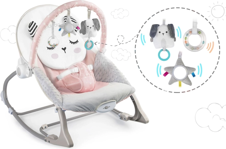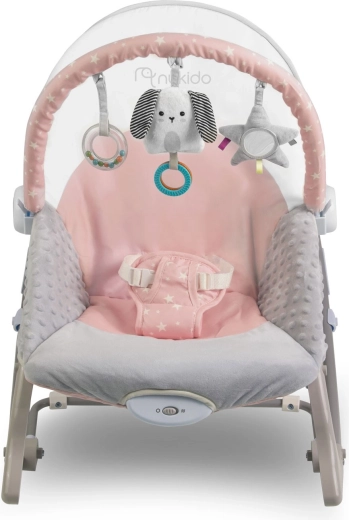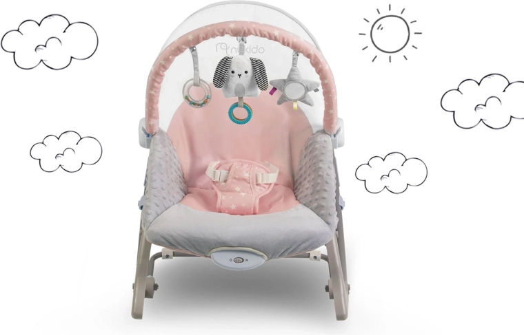 Lo sdraietto rosa con vibrazioni NUKIDO è un ottimo alleato per la cura quotidiana del bebè. Il dondolio rasserenante imita il movimento naturale noto dal pancione della mamma, aiutando il piccolo a rilassarsi e ad addormentarsi più facilmente. La modalità vibrazione si attiva con un semplice gesto e offre un dolce conforto quando hai bisogno di avere le mani libere.