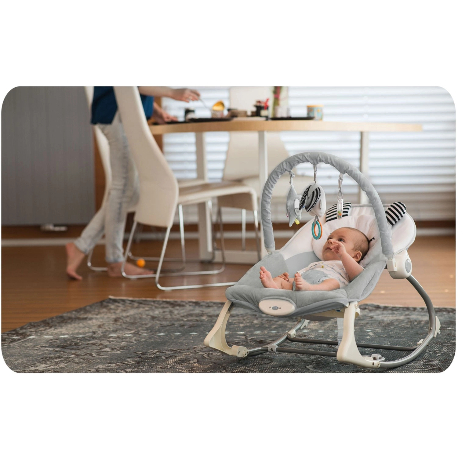 Attiva le delicate vibrazioni, adagia il bebè e offrigli un riposo sereno. Ideale quando devi rispondere a una telefonata o al corriere: il piccolo resta tranquillo e al sicuro.