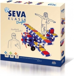 Il set SEVA Klasik Due è un kit di costruzione creativo di tipo politecnico per bambini dai 4 anni, che grazie ai perni in metallo consente di realizzare modelli mobili – radar, giostra e altro. Sviluppa la motricità fine e l'immaginazione, è compatibile con tutti i set SEVA, senza ftalati e prodotto nella Repubblica Ceca secondo la norma EN 71.