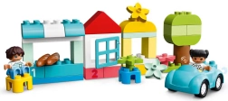 LEGO DUPLO Box con mattoncini è il set iniziale ideale per i piccoli costruttori. Include 65 pezzi colorati tra cui un'auto con ruote mobili, finestre, tetto, fiori, baguette, personaggi DUPLO e mattoncini con i numeri 1–3. Il robusto contenitore facilita sia la conservazione sia il trasporto e i pezzi grandi e sicuri sviluppano creatività, motricità fine e percezione spaziale.