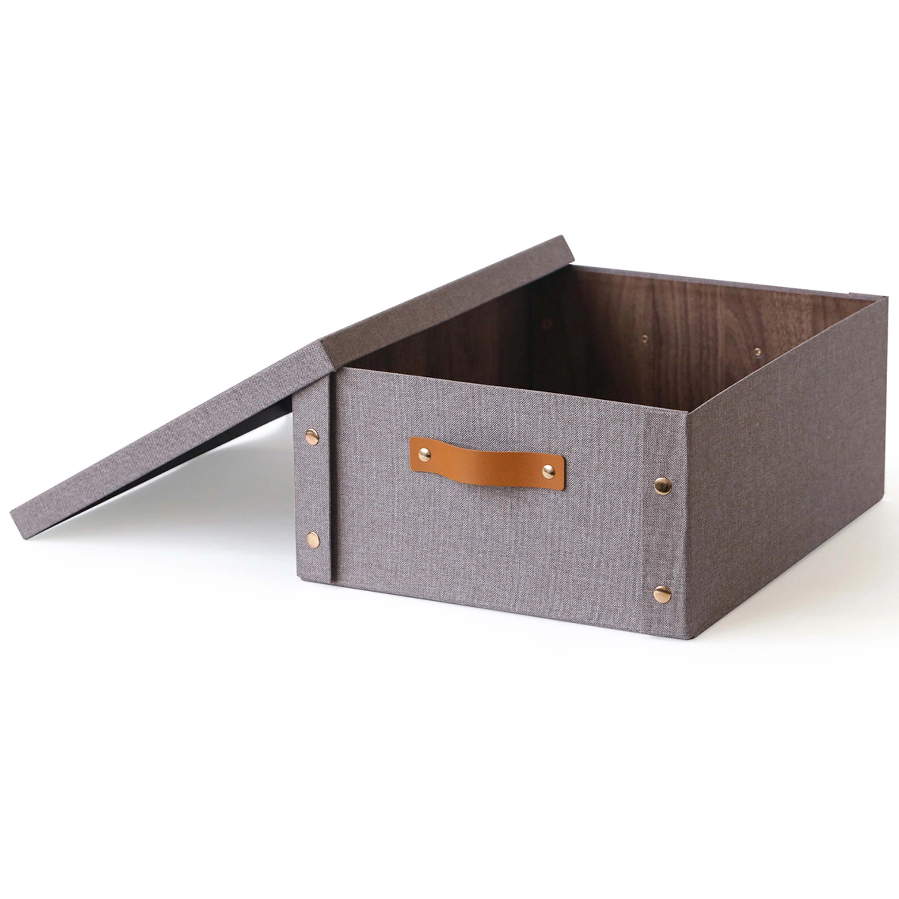 Le dimensioni 33 × 40 × 17 cm offrono spazio sufficiente per raccoglitori, quaderni o piccoli oggetti che desideri tenere organizzati e protetti dalla polvere. Il coperchio aiuta a mantenere il contenuto al sicuro e nasconde con eleganza gli oggetti riposti.