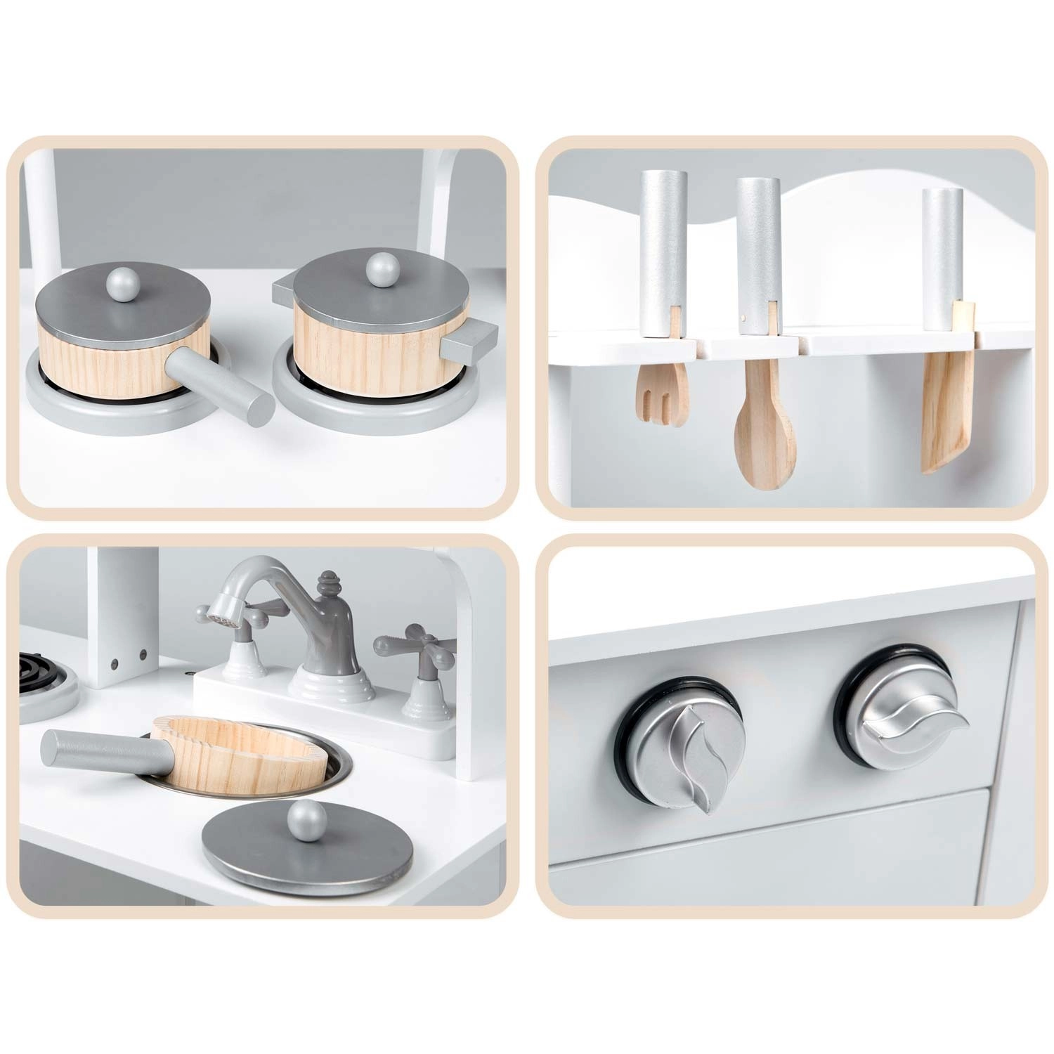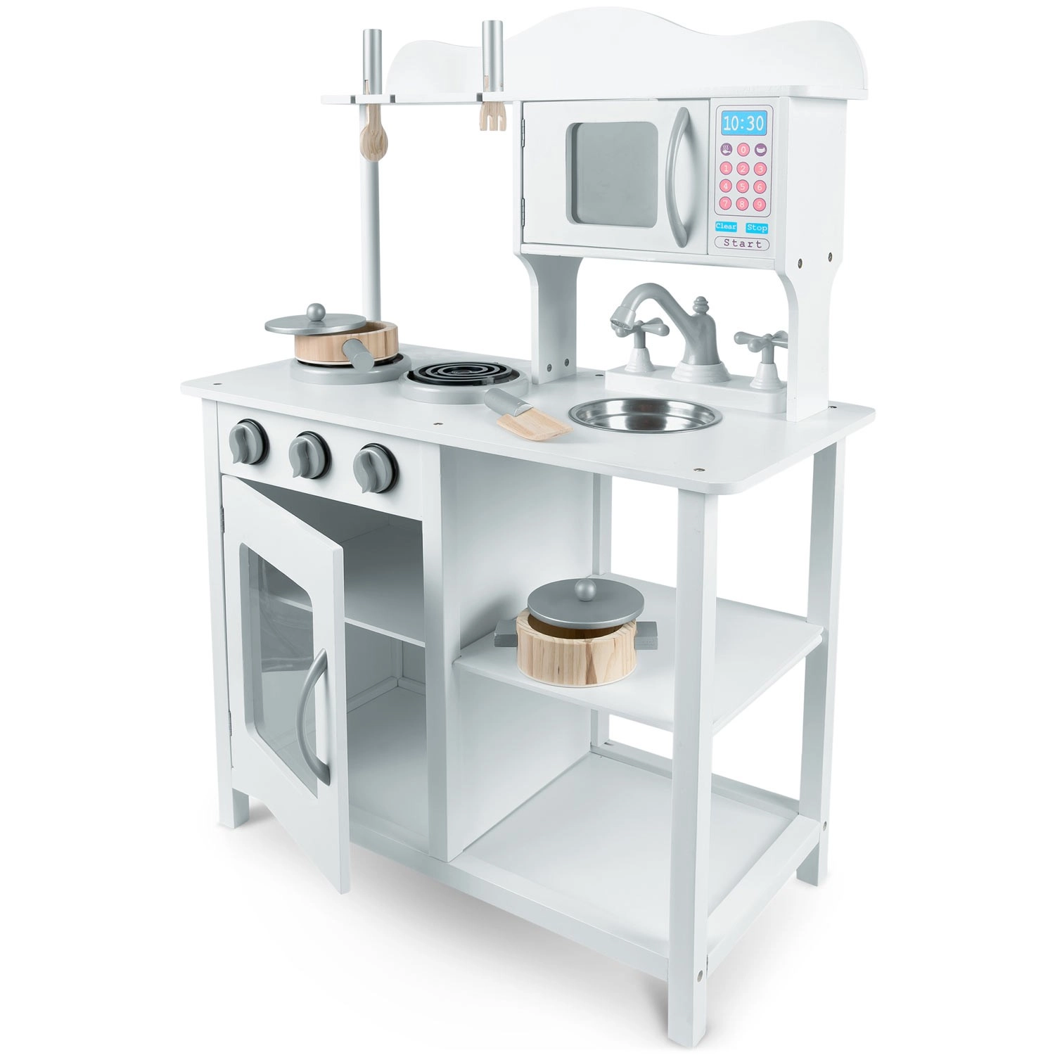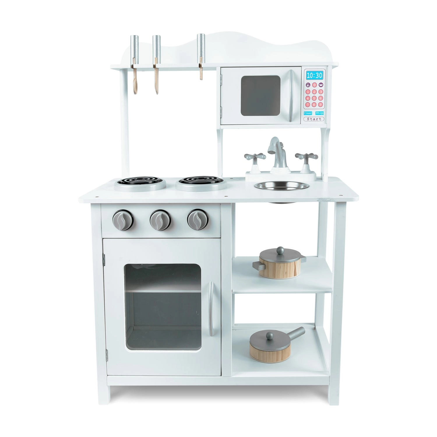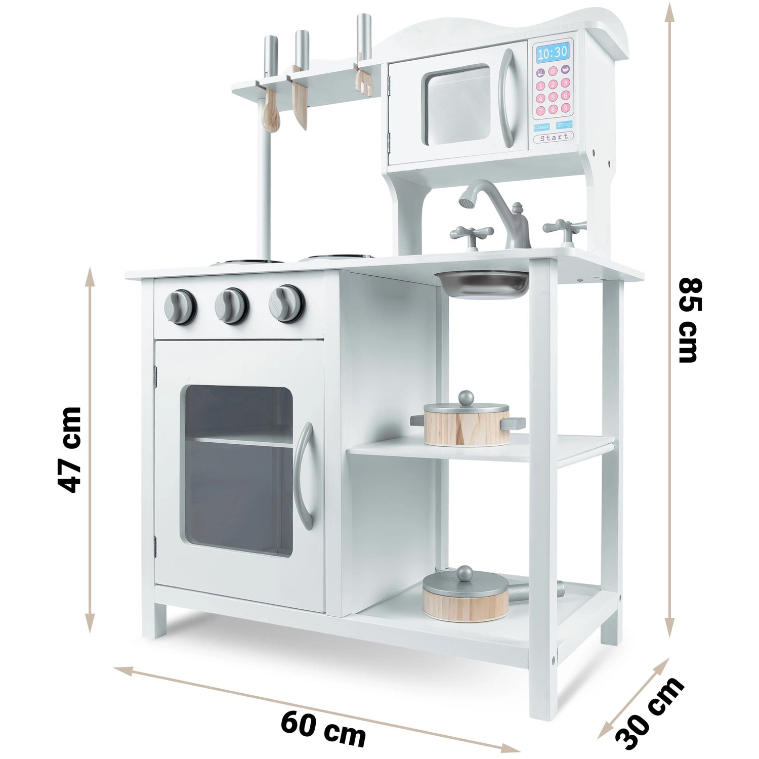 Scopri una cucina giocattolo in legno di qualità in elegante colore bianco, che sviluppa fantasia e gioco creativo. Offre manopole sensoriali girevoli, forno a microonde con pannello colorato, lavello estraibile con rubinetto e sportelli con chiusura magnetica. Inclusi pentole e utensili – tutto per ore di gioco sicuro e divertente.