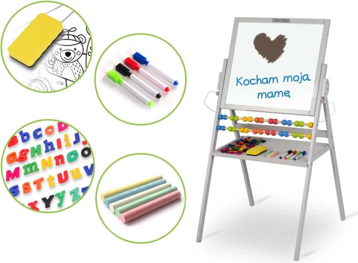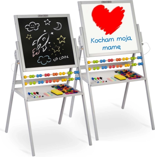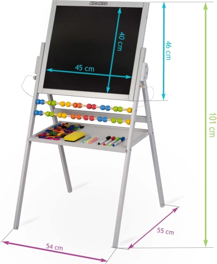 La lavagna bifacciale RICOKIDS è l’aiuto ideale per un apprendimento creativo a casa e all’asilo. Un lato è magnetico per lavorare con magneti e pennarelli, l’altro è per gessetti per il disegno classico. Include anche un abaco che sostiene in modo ludico i primi passi nella matematica.
