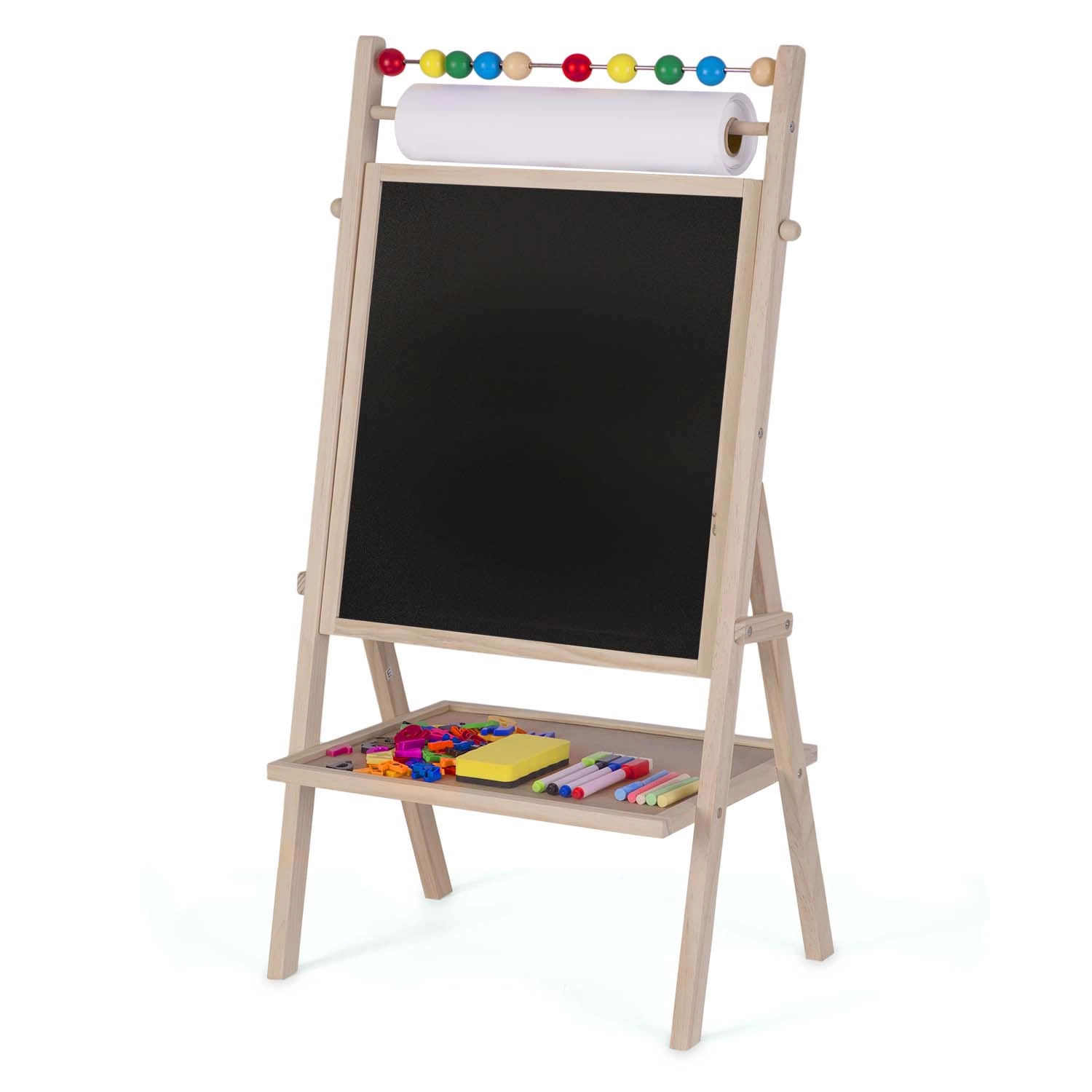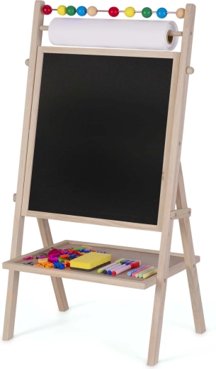 È inclusa anche un abaco, che supporta l’apprendimento giocoso della matematica. La stabile struttura in legno, i materiali sicuri e la pratica mensola per gli accessori garantiscono ordine e un utilizzo confortevole a casa e all’asilo.