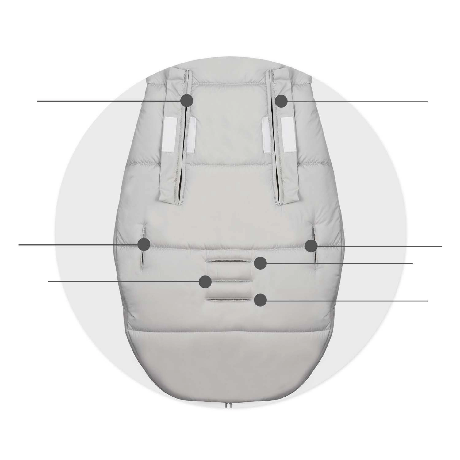 Apertura dall’alto e dal basso per aerazione e accesso facile. Il sacco può essere aperto completamente e utilizzato come inserto per passeggino – massima flessibilità per tutta la stagione.