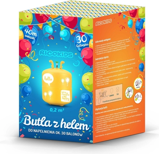 Set completo con 0,20 m³ di elio, 30 palloncini colorati e 40 m di nastro decorativo – pronto per una festa immediata senza dover cercare altri accessori.