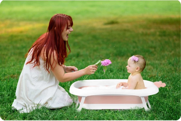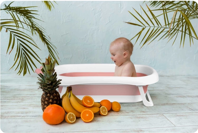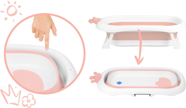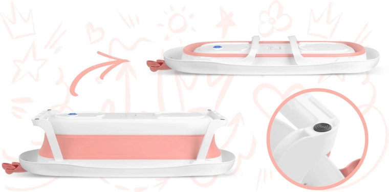 Questa vaschetta pieghevole per bambini, in finitura bianco–rosa, è progettata per un bagnetto comodo e sicuro fin dai primi giorni di vita. Grazie alle gambe richiudibili stabili e agli elementi antiscivolo, non si richiude durante l’uso e resta ben ferma. Il tappo intelligente a forma di stella segnala con un cambio di colore quando l’acqua supera i 38 °C, così hai sempre la temperatura sotto controllo.