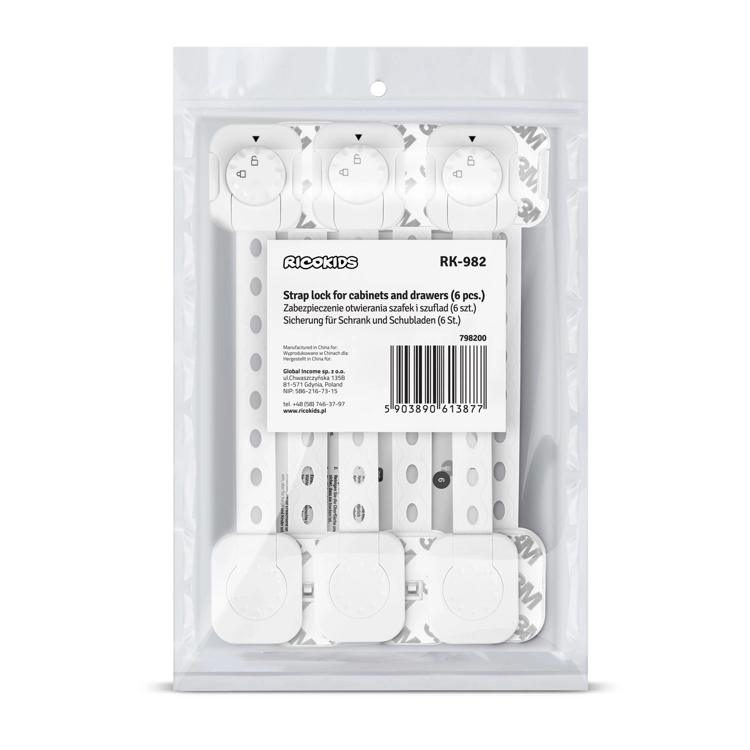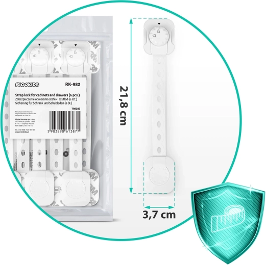 Proteggi la tua casa da piccole manine curiose con questo pratico set di 6 blocchi di sicurezza RICOKIDS. Grazie alla colla 3M ad alta tenuta, alla lunghezza del cinturino regolabile e alla facile installazione senza attrezzi, metterai in sicurezza in pochi istanti armadietti, cassetti e anche elettrodomestici. Le chiusure sono resistenti, non danneggiano i mobili, hanno un funzionamento silenzioso e sono stabilizzate ai raggi UV, quindi non scoloriscono.