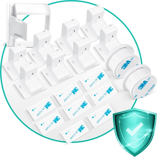 Il design bianco minimalista e la plastica resistente garantiscono una lunga durata anche con uso quotidiano. Le sicurezze sono silenziose, non danneggiano i mobili e, se necessario, si rimuovono facilmente. Ideali per armadietti da cucina, cassettiere e cassetti del bagno.