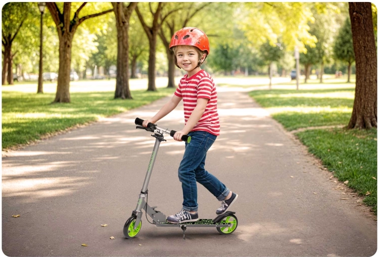 Il monopattino per bambini RICO KIDS Kodi, leggero e compatto, è ideale per piccoli rider dai 3 agli 8 anni. Offre manubrio regolabile, grandi ruote in PU da 145 mm (83A) per una guida fluida, due freni – a mano e a pedale per maggiore sicurezza e un ampio pedale antiscivolo per la stabilità. I cuscinetti di qualità ABEC‑7 garantiscono una guida veloce, silenziosa e scorrevole. Conforme alla norma EN 71.