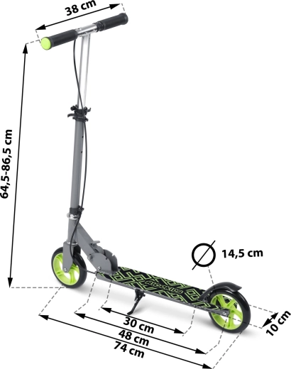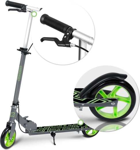 Cerchi un monopattino che cresca con il bambino e al tempo stesso offra sicurezza sulla pavimentazione urbana e sulle piste ciclabili? Il modello RICO KIDS Kodi combina peso contenuto, struttura pieghevole e confortevoli ruote in gomma PU da 145 mm di diametro, che assorbono efficacemente le asperità. Grazie al freno a mano e a quello a pedale, il piccolo rider ha pieno controllo di guida e frenata.