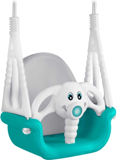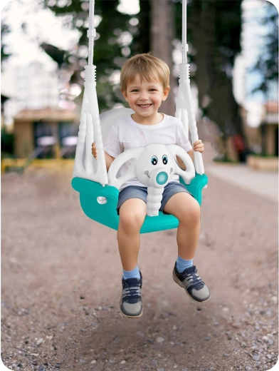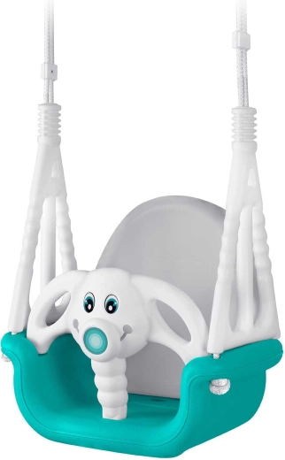 Altalena universale per bambini 3in1 con simpatico motivo dell’elefantino, cresce con il tuo bambino da 6 mesi fino a 10 anni. Offre schienale alto, barra di sicurezza anteriore e corde robuste regolabili per un dondolio sicuro in casa e all’aperto. Struttura in plastica impermeabile resistente, seduta antiscivolo e certificazioni CE, GS per la massima tranquillità dei genitori.