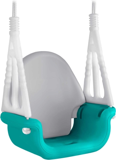La struttura modulare 3in1 consente di adattare l’altalena all’età e alle capacità del bambino: con schienale e barra anteriore per i più piccoli, senza barra per i prescolari e come altalena piatta classica per i più grandi. Grazie a materiali di qualità, ergonomia studiata e presa sicura, offre il massimo comfort e sicurezza nell’uso quotidiano.