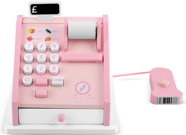 I bambini possono riporre banconote e monete nel capiente cassetto e “stampare” gli scontrini grazie al rotolo di carta, proprio come in una vera cassa.