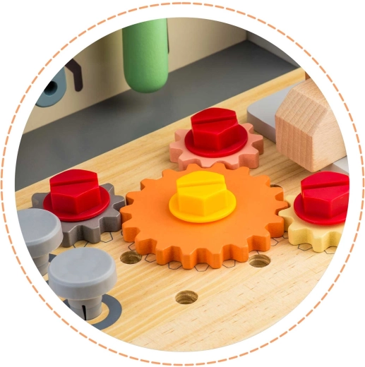 Il set è ispirato ai principi Montessori: promuove l’apprendimento attraverso il gioco, lo sviluppo della pazienza, la coordinazione occhio–mano e la comprensione di causa ed effetto. Grazie ai numerosi elementi da manipolare, i bambini esercitano motricità fine, concentrazione e fantasia e imparano a riconoscere colori e forme.