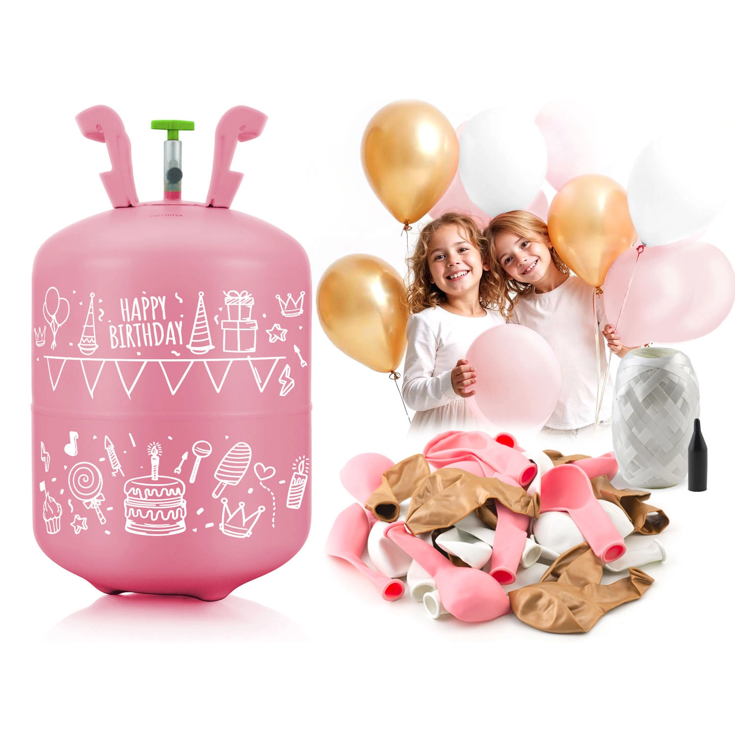 Set party completo per un allestimento immediato: bombola di elio monouso 0,20 m³ con miniriduttore, fino a 30 palloncini nei colori bianco, rosa e oro e 40 m di nastro decorativo. Uso facile e sicuro senza cauzione – ideale per compleanni, baby shower, matrimoni e feste per bambini.
