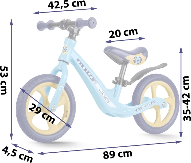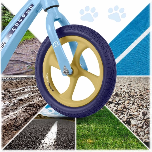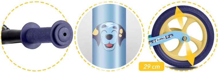 La sella in schiuma morbida, ergonomica e con regolazione continua dell’altezza (circa 35–42 cm), cresce con il bambino e consente una guida confortevole in ogni fase dello sviluppo. Le manopole in gomma con finecorsa proteggono le mani e migliorano la sicurezza della presa. La balance bike favorisce autostima, concentrazione e un passaggio naturale alla classica bici a pedali.