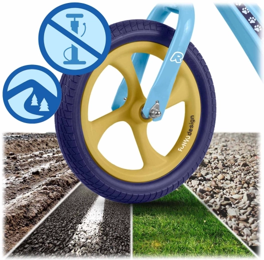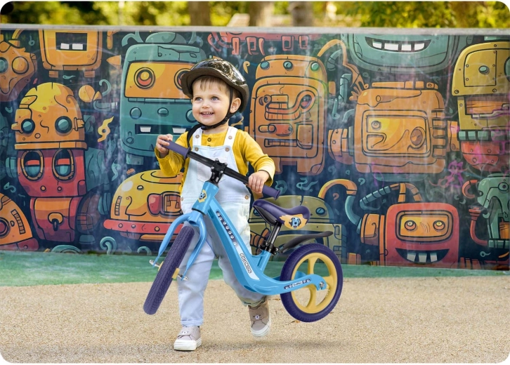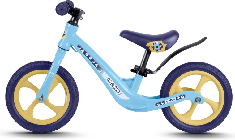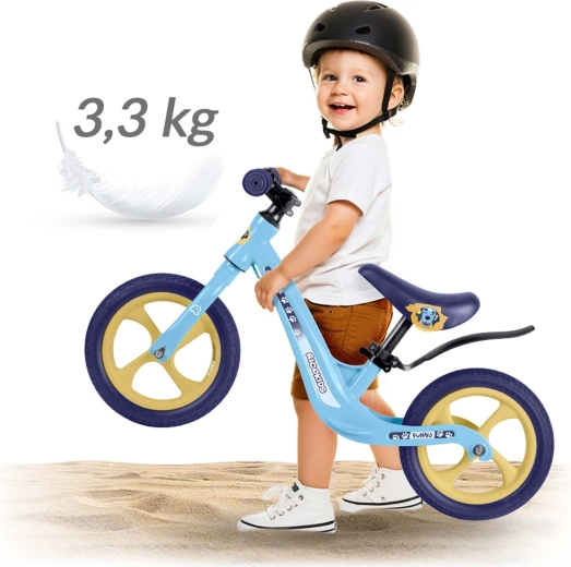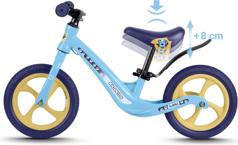 Ricokids Funnu è la balance bike ideale per i piccoli ciclisti alle prime armi. Grazie alla struttura ultraleggera, i bambini la gestiscono con facilità e i genitori la trasportano senza sforzo al parco o su per le scale. Il telaio in magnesio garantisce elevata robustezza con peso ridotto e le ruote in schiuma EVA sono esenti da manutenzione, silenziose e antiforatura: perfette su erba, asfalto e ghiaia fine.