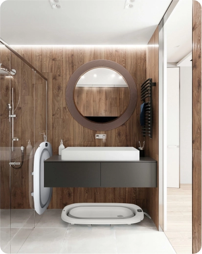 La struttura stabile con gambe richiudibili si piega facilmente in un formato compatto. I piedini antiscivolo e il pratico supporto per doccetta facilitano il bagnetto quotidiano.