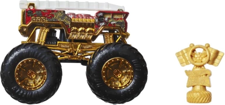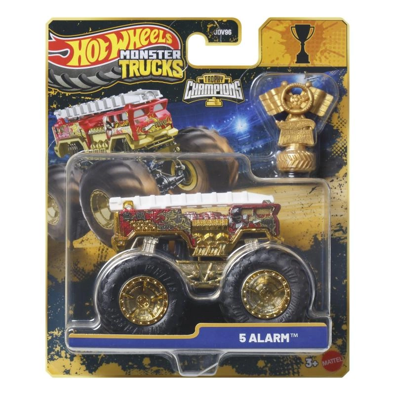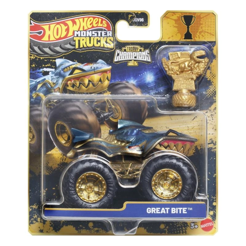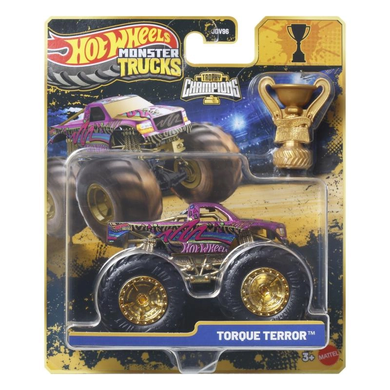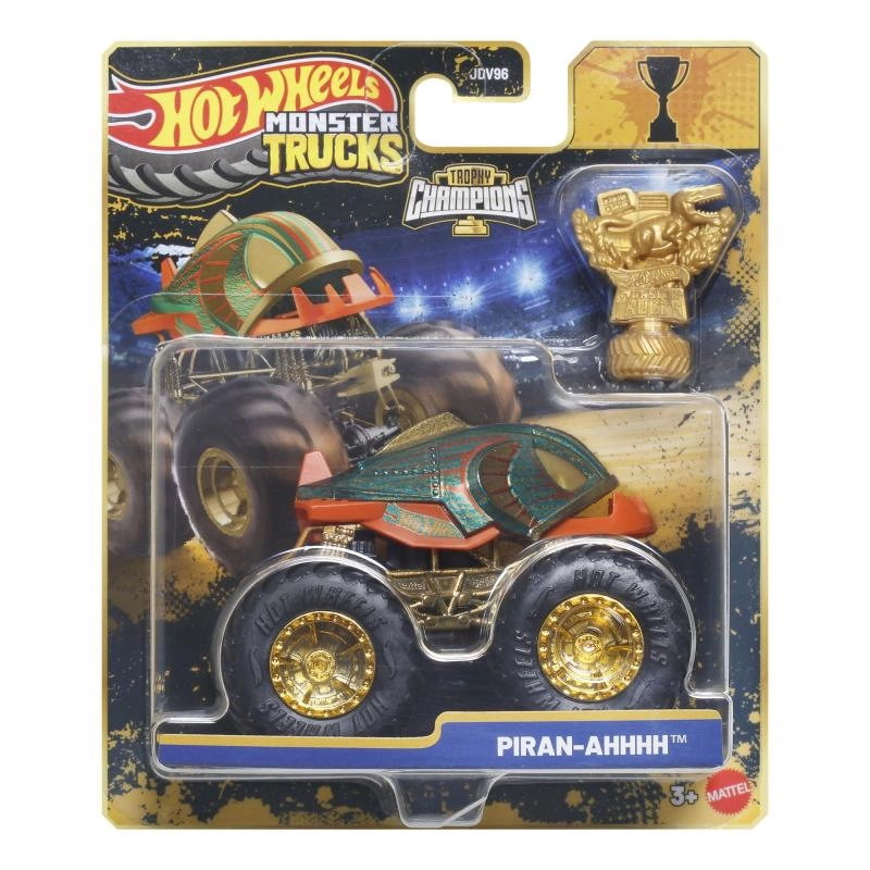 Nella confezione è inclusa una trofeo dorato Hot Wheels Monster Trucks Live – ideale per storie di gara ed esposizioni d’effetto.