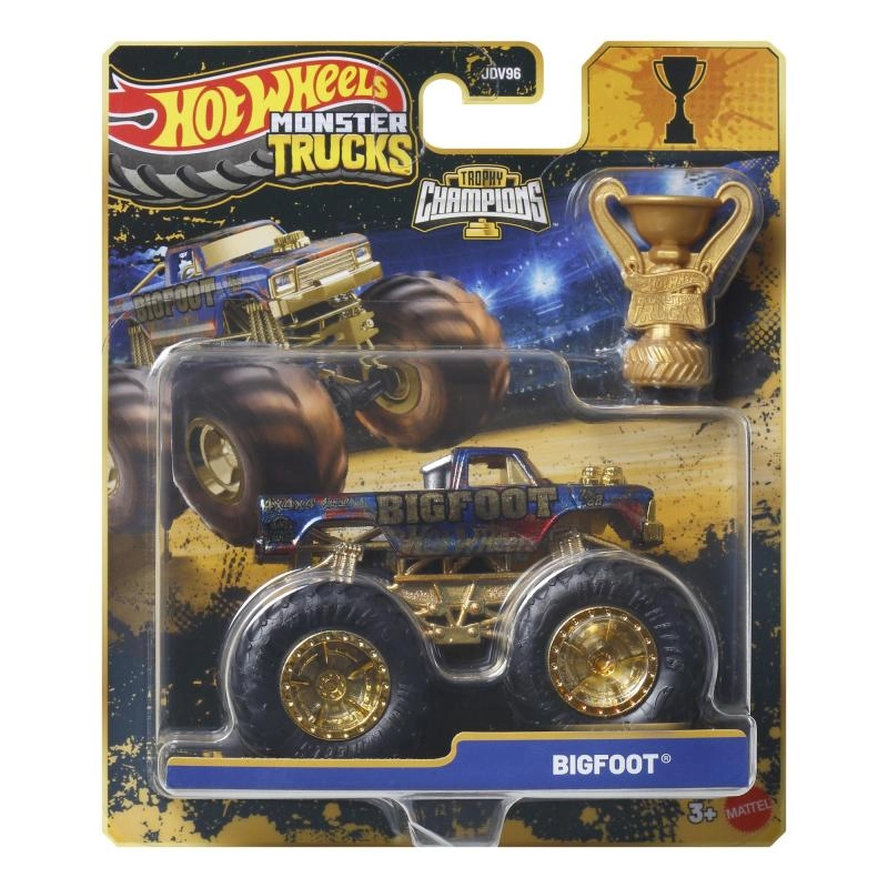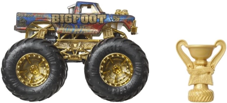 La speciale collezione commemorativa Hot Wheels Monster Trucks Trophy Champions porta l’iconico BIGFOOT in una versione premium. La struttura robusta, le grandi ruote scolpite e i dettagli dorati ne esaltano l’aspetto leggendario, mentre il trofeo incluso aggiunge la giusta atmosfera a ogni gara. Un modello perfetto sia per il gioco sia per l’esposizione in collezione.