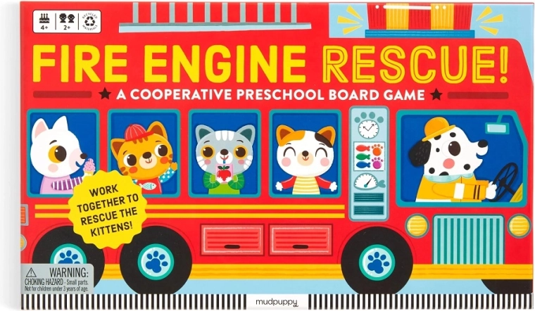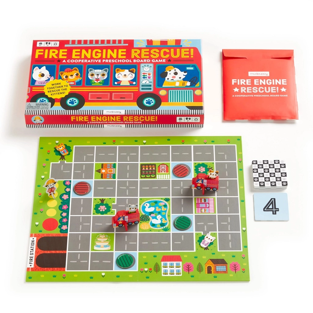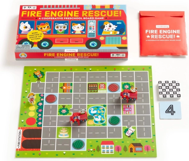 Operazione di salvataggio dei pompieri è un gioco cooperativo prescolare ingegnosamente progettato, in cui i giocatori muovono insieme i camion dei pompieri attraverso la rete di strade cittadine, raccolgono i gattini bloccati e li riportano in sicurezza alla stazione. Il gioco insegna ai bambini a collaborare, ad aspettare il proprio turno e sviluppa concentrazione, immaginazione e le abilità di base di calcolo.